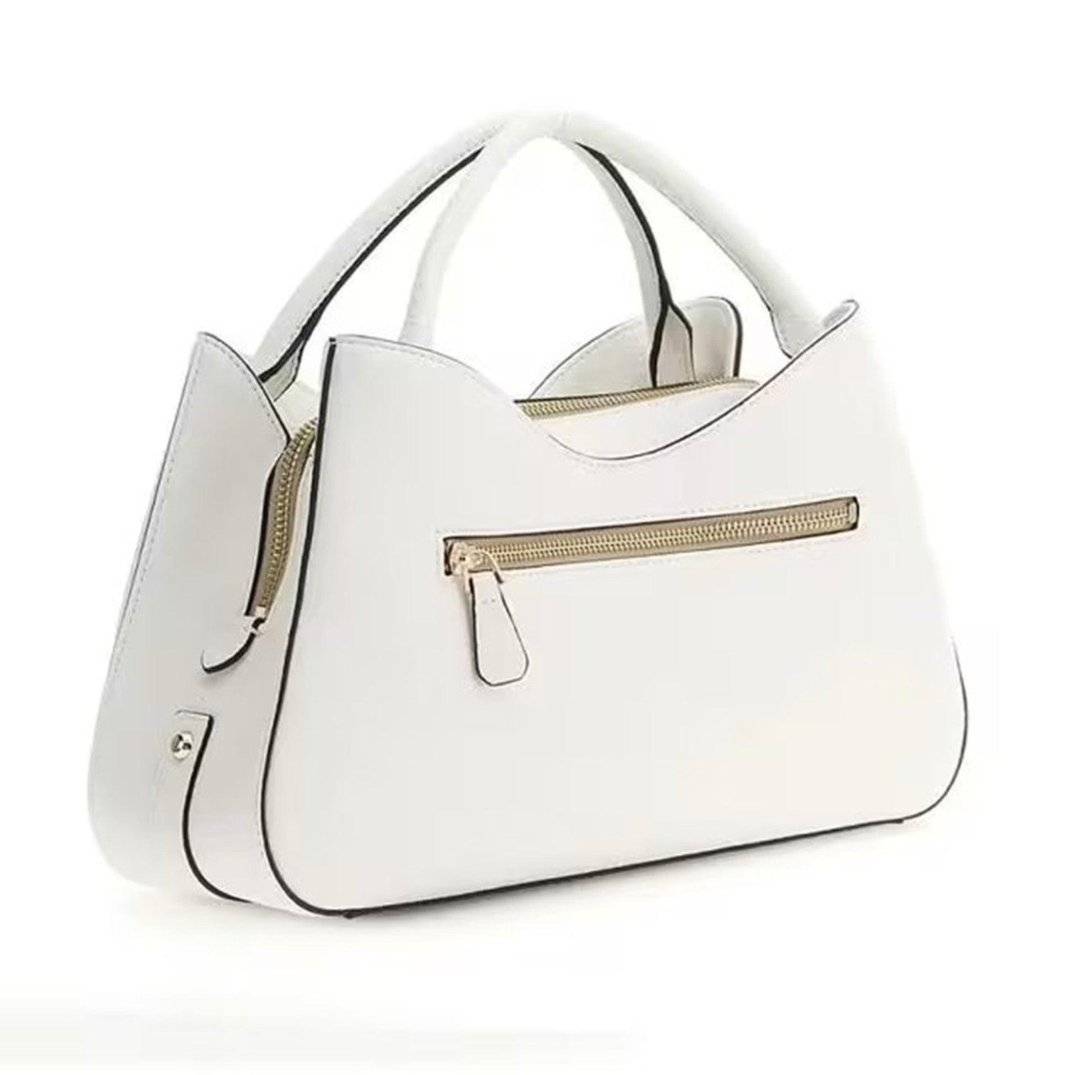 Den eleganta vita färgen kombineras med guldfärgade detaljer för en lyxig känsla. Väskan har två bekväma bärhandtag med ca 11 cm bärhöjd samt en avtagbar och justerbar axelrem, vilket gör den flexibel för både hand- och axelbärande.