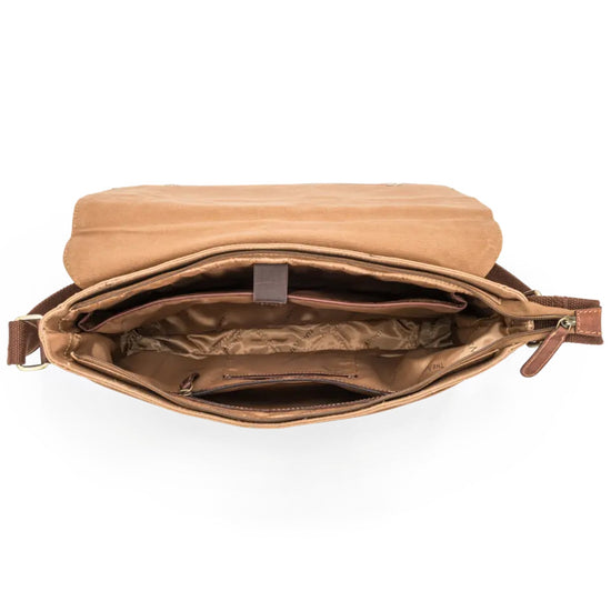 The Monte Axelväska i canvas & läder – Messengerväska med klaff Sand