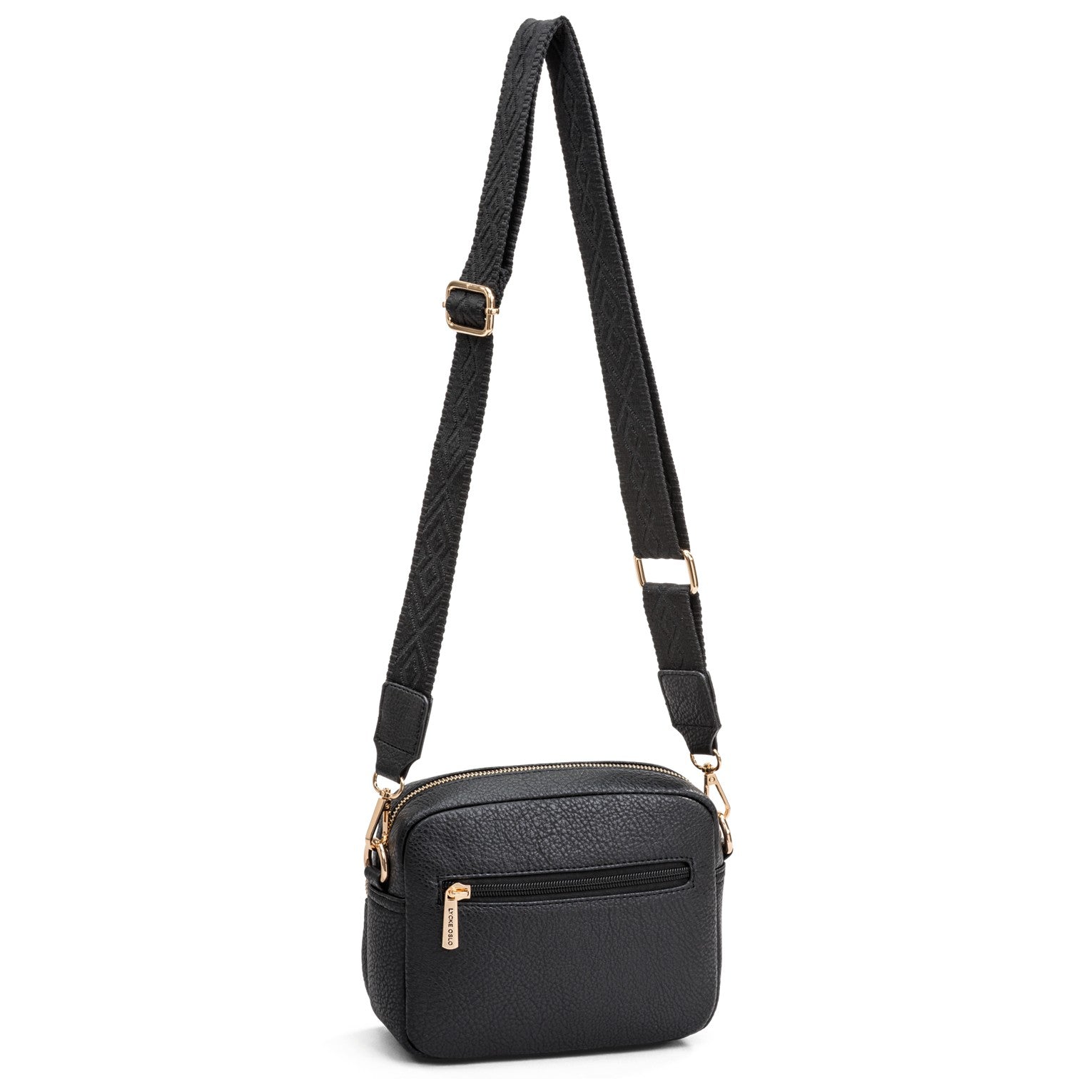 Leder du efter en moderne skuldertaske, der kombinerer trend og funktion? Lycke Alma er en elegant kamerataske i imiteret læder med gulddetaljer og en aftagelig, flerfarvet tekstilrem, der giver tasken et unikt udtryk. Perfekt til dem, der ønsker både mode og praktisk opbevaring i ét tilbehør.