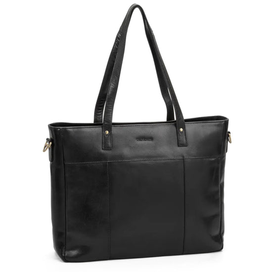 The Monte Business Handväska Stor i Skinn Svart är designad för kvinnan som vill kombinera professionell elegans med praktisk funktion. Tillverkad i 100% premium kalvskinn, erbjuder väskan en mjuk och levande yta som bara blir vackrare med tiden och utvecklar en naturlig patina.