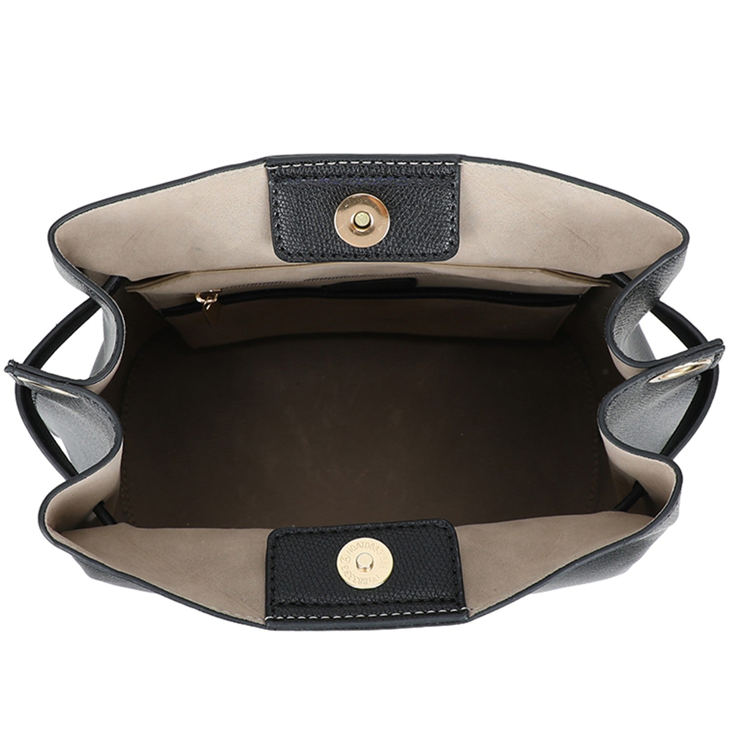 Ett öppet innerfack samt ett fack med dragkedja
