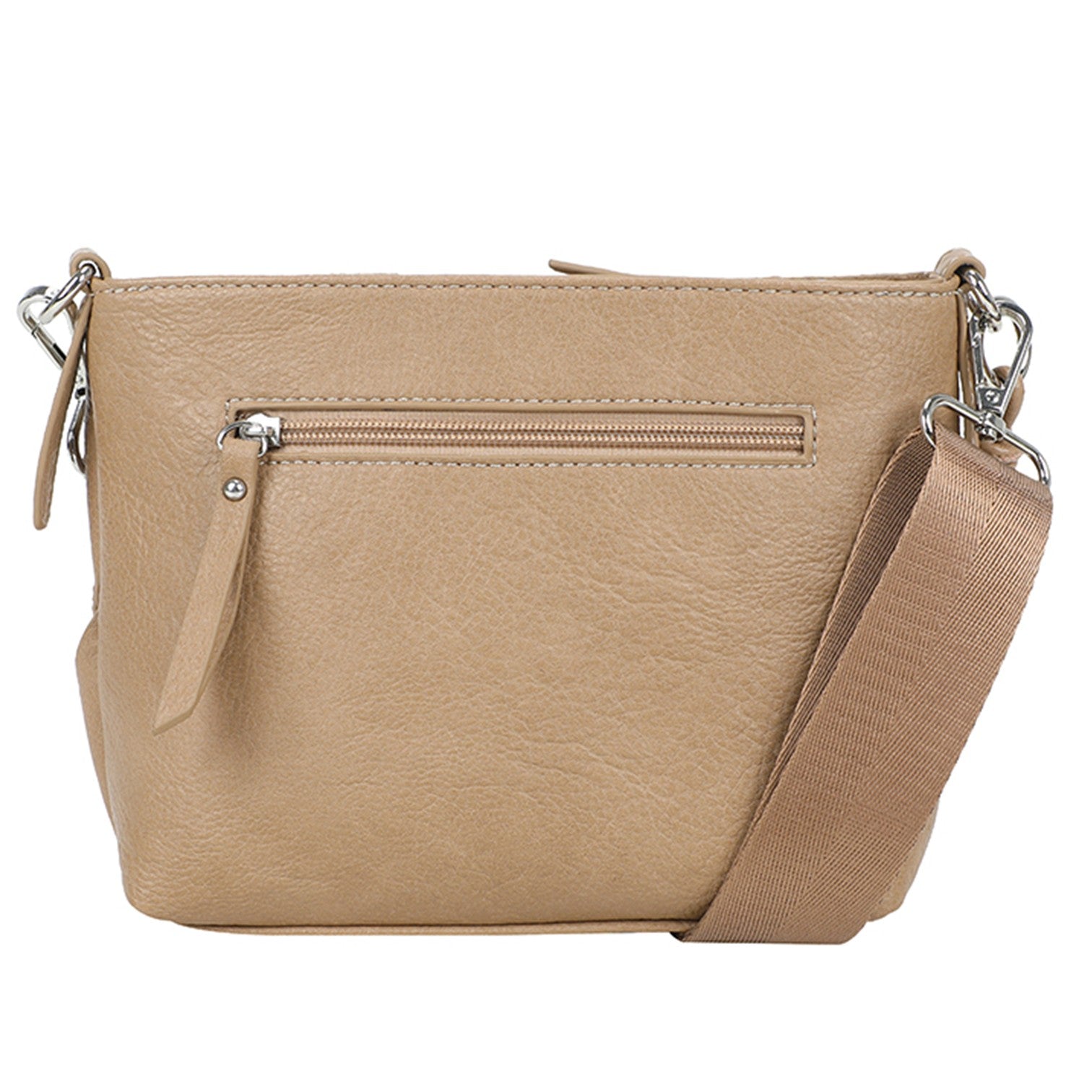 Väskan är tillverkad i högkvalitativt konstskinn med mjuk finish som påminner om äkta läder. Den dekorativa flätdetaljen framtill ger ett exklusivt uttryck, medan de silverfärgade metalldetaljerna förstärker det stilrena intrycket.