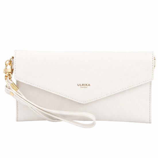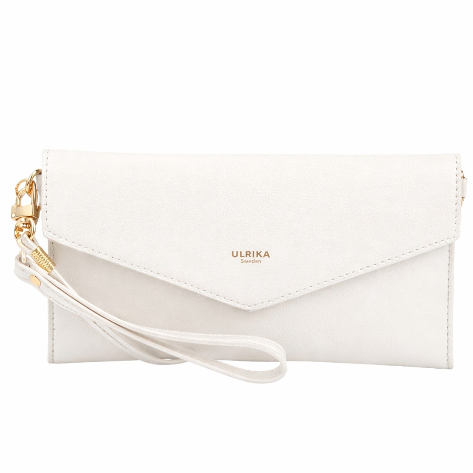 En elegant och stilren kuvertväska från Ulrika som passar perfekt till fest, bröllop eller en kväll ute. Den klassiska vita designen kombineras med snygga gulddetaljer som ger väskan en exklusiv och modern känsla. ✨