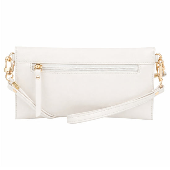 Denna kompakta och trendiga kuvertväska i Vit konstskinn är både stilfull och praktisk. Väskans huvudfack öppnas enkelt med en klaff som stängs med magnetknapp, vilket gör att dina tillhörigheter förvaras säkert samtidigt som de är lätta att komma åt.