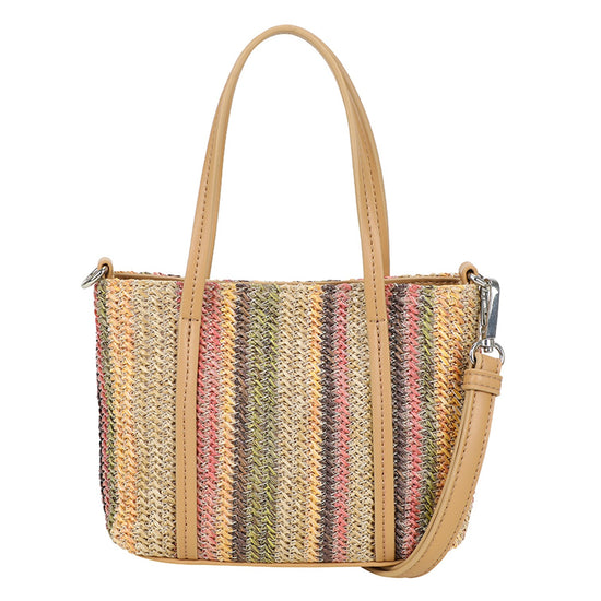 Ulrika Straw Mini Handväska – Rosa Multifärgad är en kompakt men stilfull väska som ger din outfit en fräsch och somrig känsla. Kombinationen av stråmaterial, feminina färger och smart funktionalitet gör den till ett perfekt val för allt från stadspromenader till semesterresor.