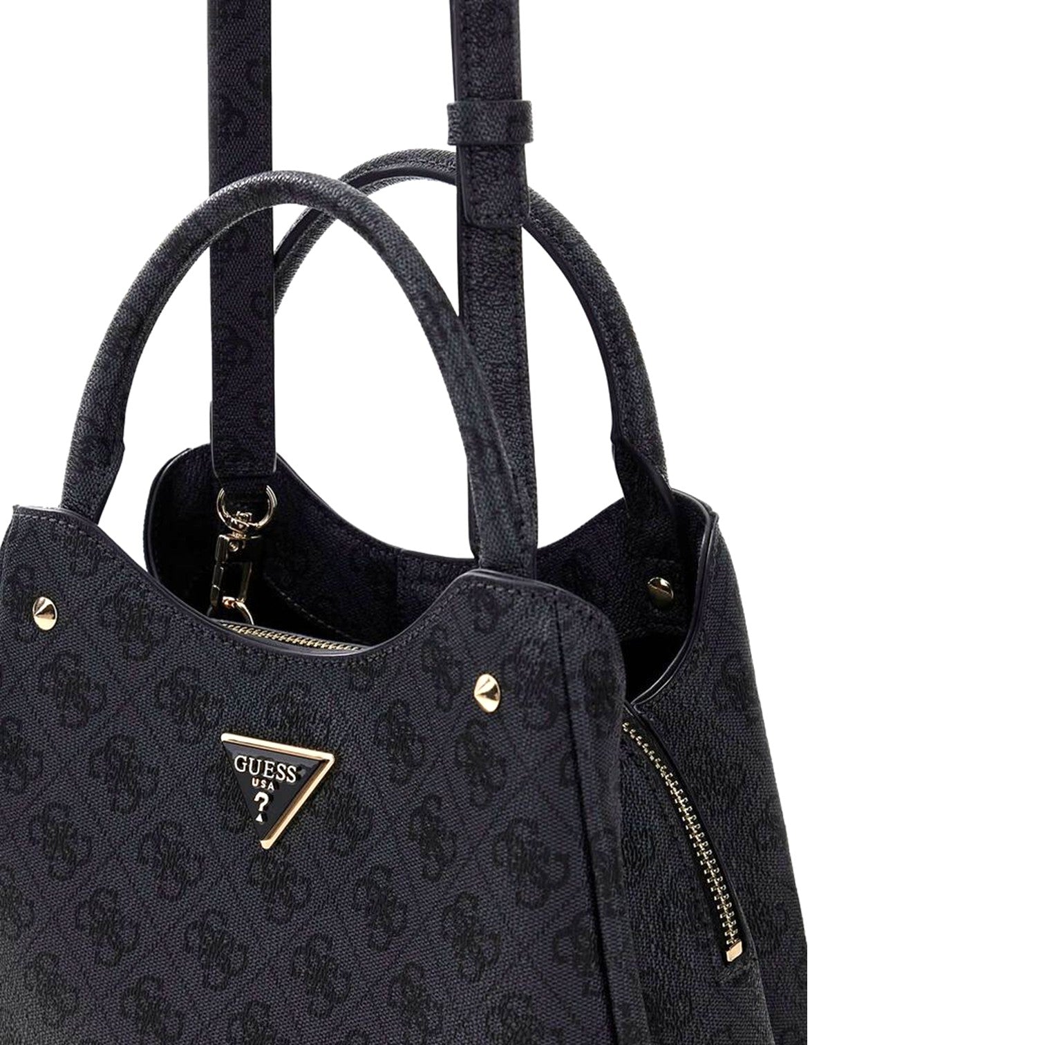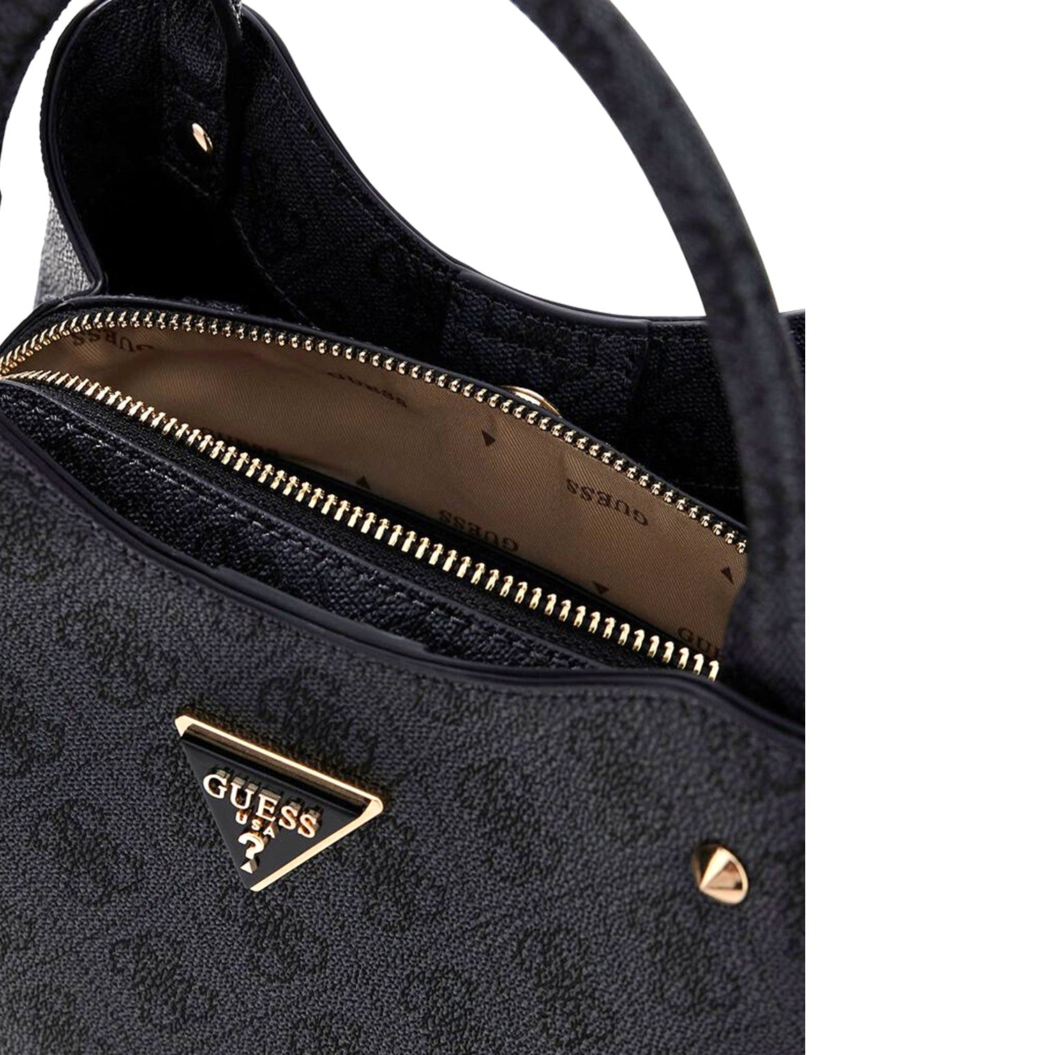 Med två korta bärhandtag och en avtagbar, justerbar axelrem kan du bära den precis som du vill. Sidofacken med magnetknapp ger snabb åtkomst, medan huvudfacket med dragkedja håller dina saker säkra. Invändigt får du smart organisering med både dragkedjefack och öppna fack – och ett ljust foder med Guess-logotyp för en extra premiumkänsla. ✨