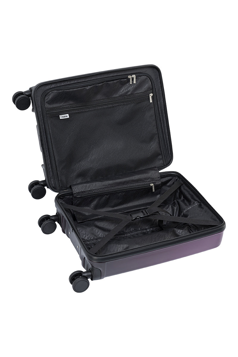 Trots sitt kompakta format erbjuder väskan en fullutrustad inredning med dubbla packband, avdelare och flera praktiska fickor som gör det enkelt att hålla ordning.