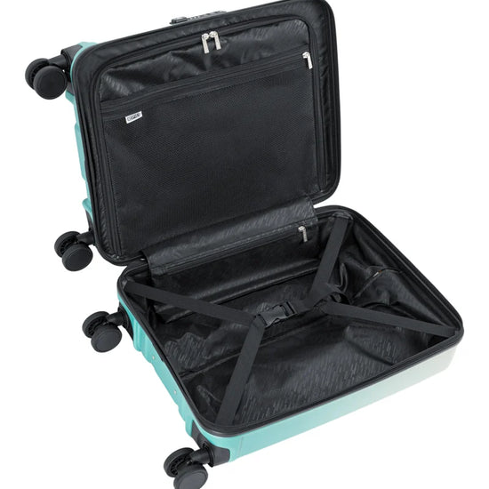 Trots sitt kompakta format erbjuder väskan en fullutrustad inredning med dubbla packband, avdelare och flera praktiska fickor som gör det enkelt att hålla ordning.