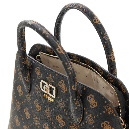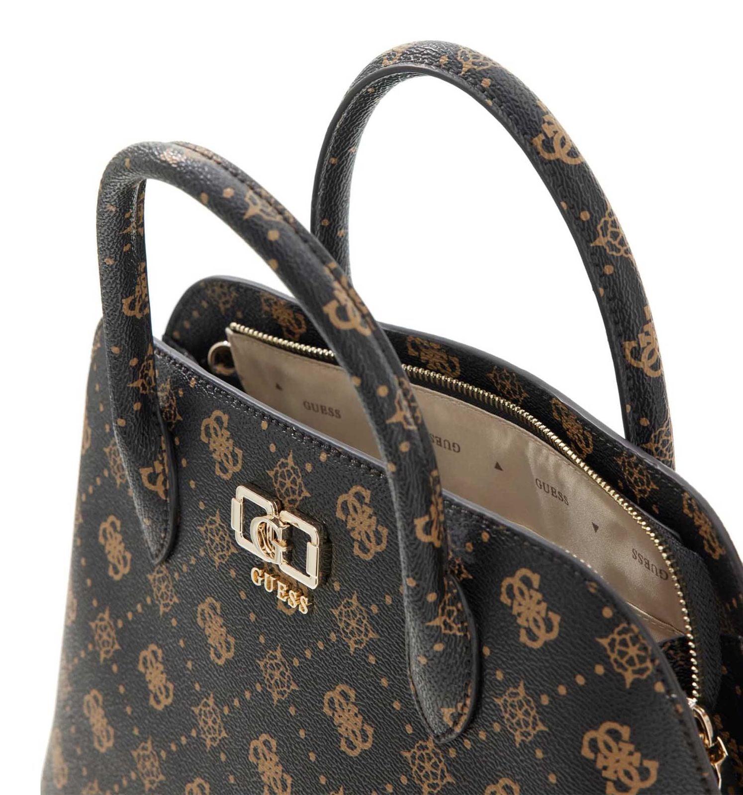 En elegant och stilren handväska från Guess som kombinerar klassisk design med praktiska funktioner för både vardag och arbete. Den djupa Mörkbruna färgen tillsammans med exklusiva gulddetaljer ger väskan ett sofistikerat och tidlöst uttryck som enkelt kompletterar din stil.