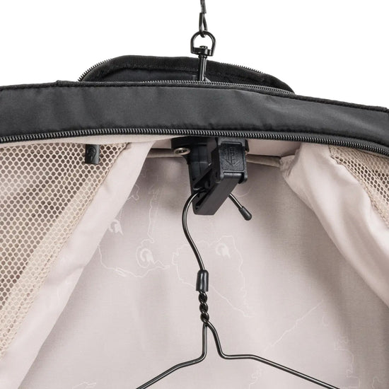 Det här är en väska som gör affärsresan smidigare från start till mål. Tack vare den integrerade galgen, de praktiska invändiga facken och skyddet mot damm får dina kläder en välorganiserad plats under hela resan. När du rör dig genom flygplatsen gör slejfen på baksidan att väskan enkelt kan fästas på trolleyhandtaget, vilket ger en bekvämare resa och bättre överblick.